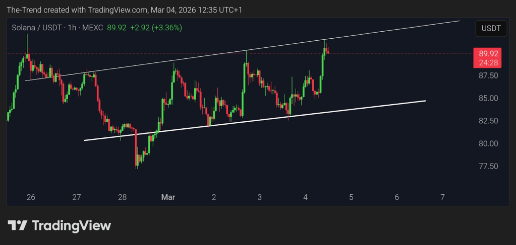 Solana holders are monitoring a key level on the four-hour chart as the asset enters a phase of short-term compression. SOL is trading near the $92 resistance zone following a modest rebound over the past 24 hours. This level has become a near-term decision point, with market participants watching for either a breakout that could extend upside momentum or a rejection that may push price back to $78. While SOL holders watch this technical structure, Mutuum Finance (MUTM) expands its presence in the market.